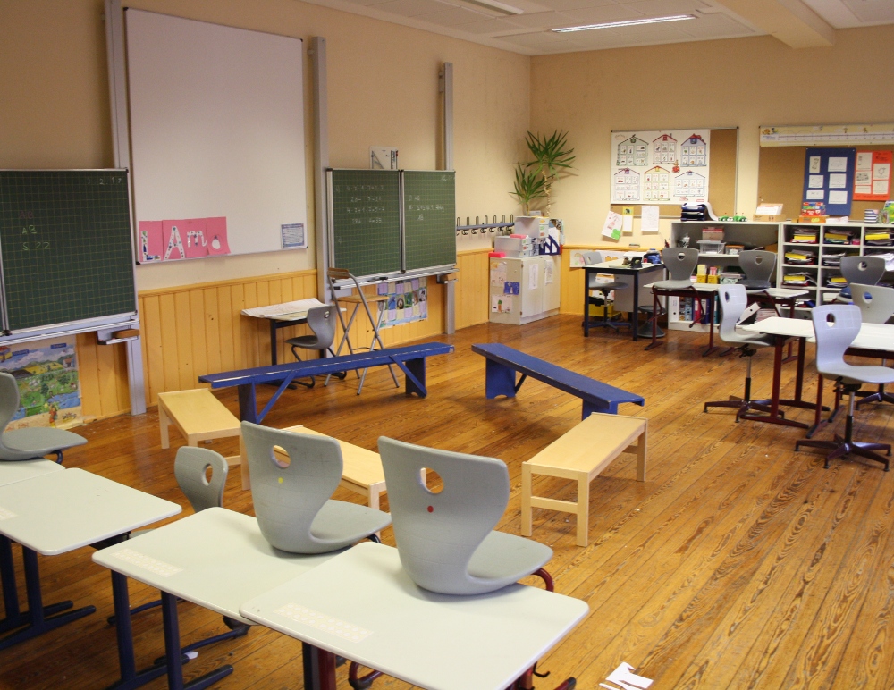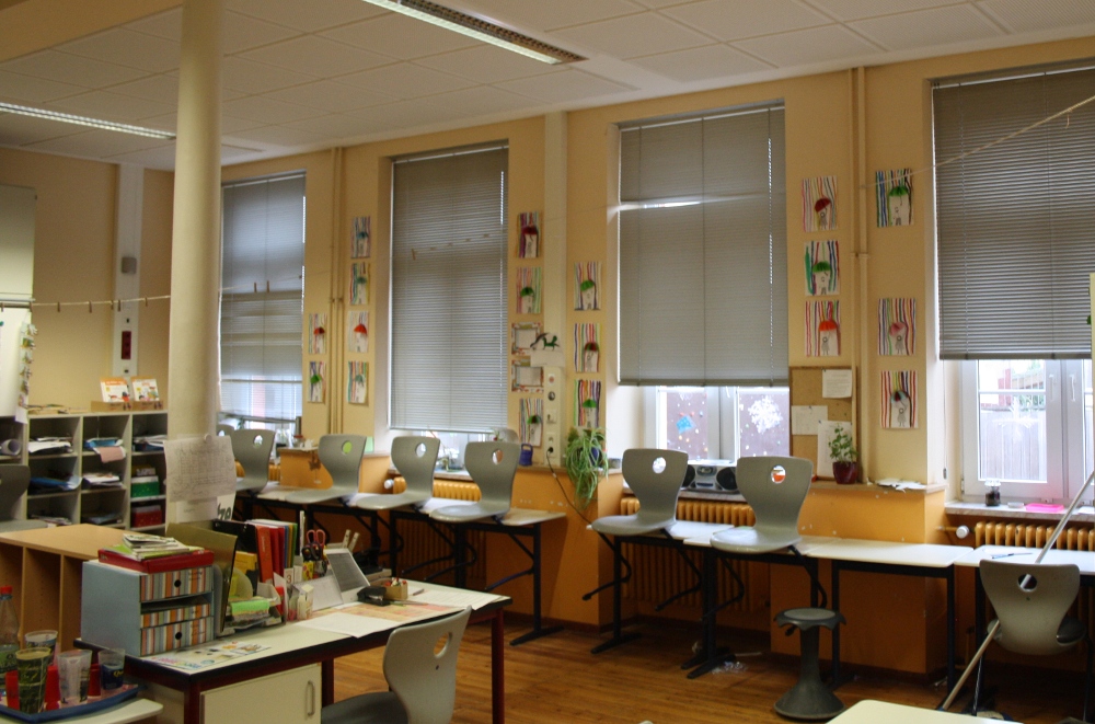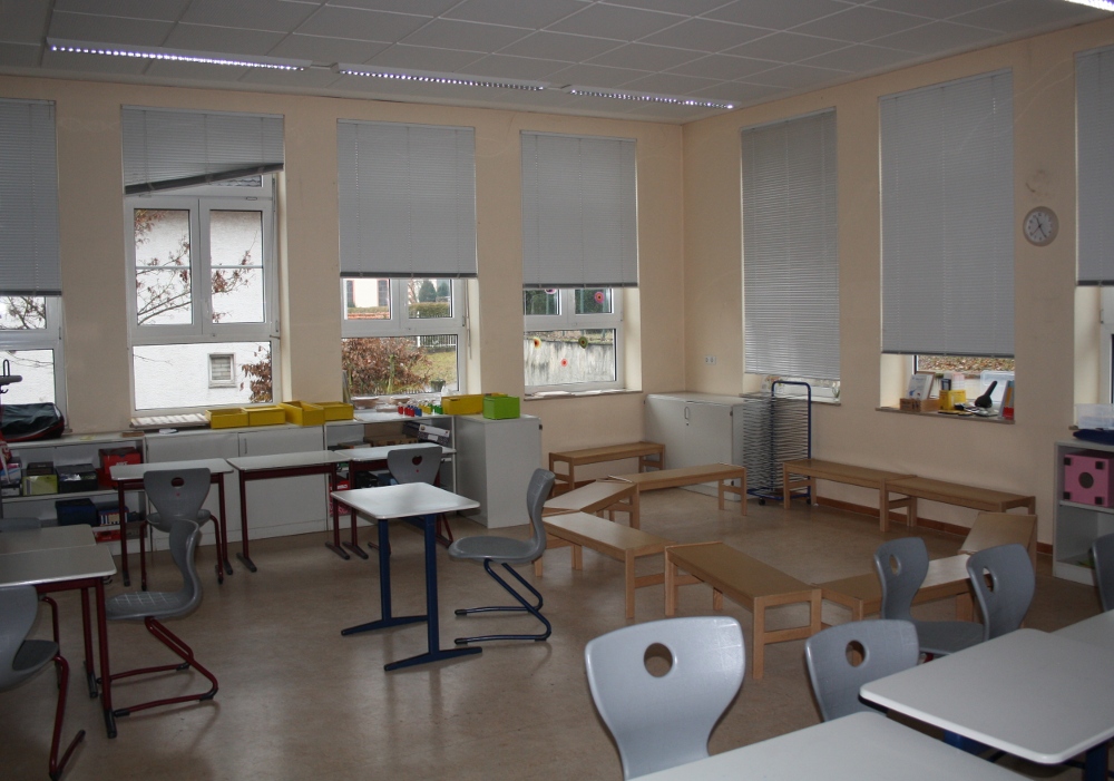 Jeder Klassenraum verfügt über Tische, Stühle, zwei Tafeln (für die verschiedenen Jahrgänge) und verschiedene Schränke, die genügend Stauraum für Unterrichtsmaterial bieten. Zum Teil werden die Schränke auch zur übersichtlichen Bereitstellung von Material für Sachunterricht, Mathematik und Deutsch genutzt.